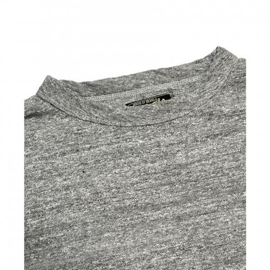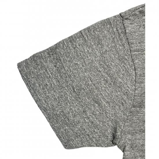 強撚りの18/-の端番手のムラ糸で通常より固く仕上げることにより、柔らかくて肉厚な質感のある生地を使用したTシャツ。