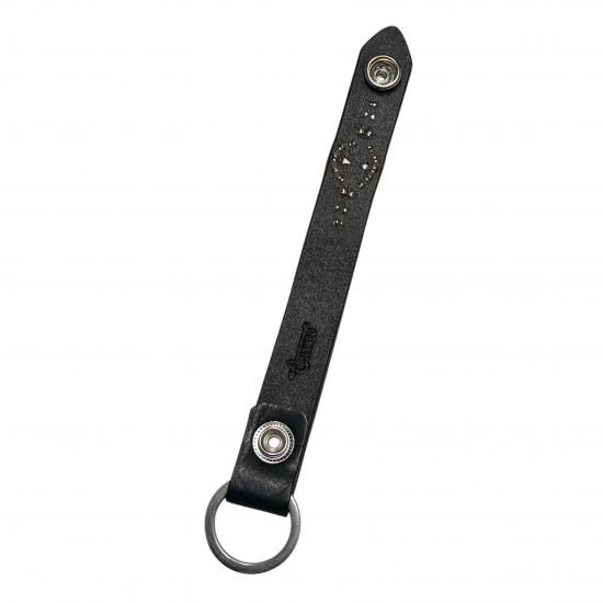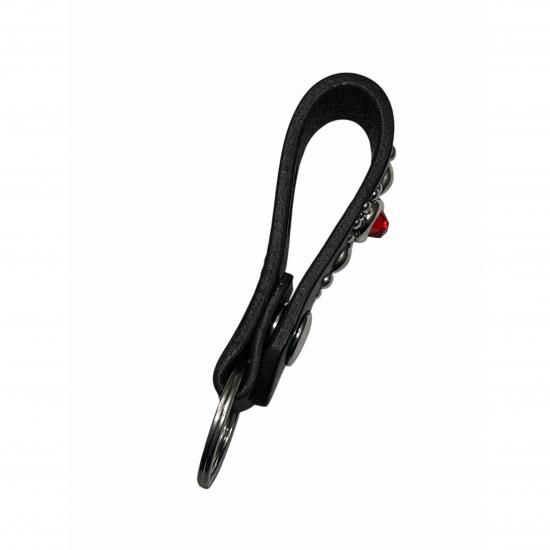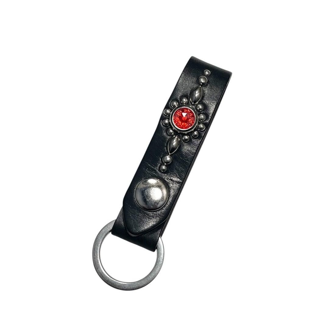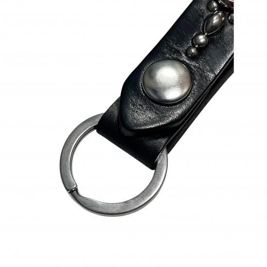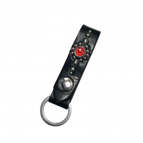 Jewel Studded Leather Key Ring "Helios Pattern" Black 【ZA-0706】