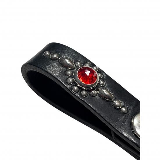 真鍮素材を下地とし、ニッケルメッキを施したThe Standard Rivet Companyのスタッズと同社のジュエルスタッズを使用したアイテム。
