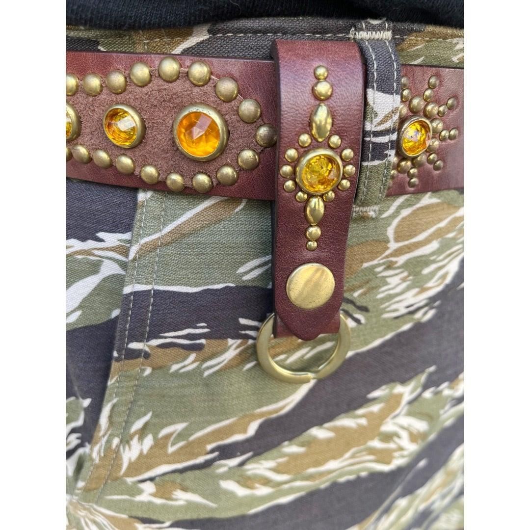 真鍮素材を下地とし、ニッケルメッキを施したThe Standard Rivet Companyのスタッズと同社のジュエルスタッズを使用したアイテム。