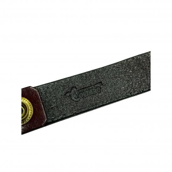 厚みが5〜6mmのベンズレザーを、Standard Rivetが適切に留められるよう、最大厚4mmに漉き使用しています。