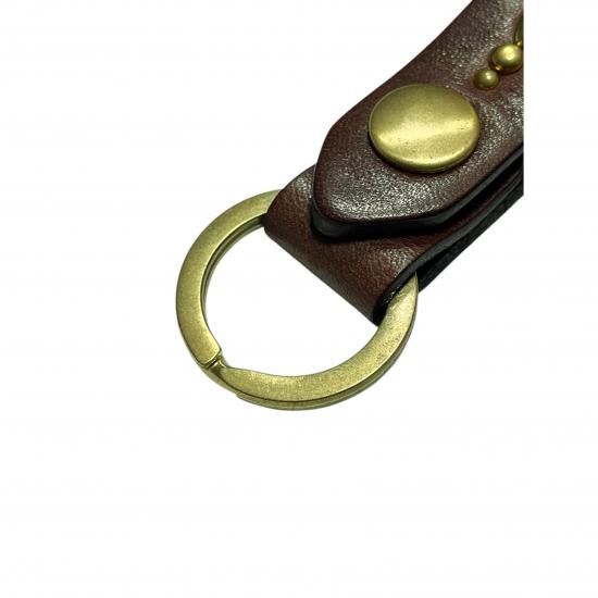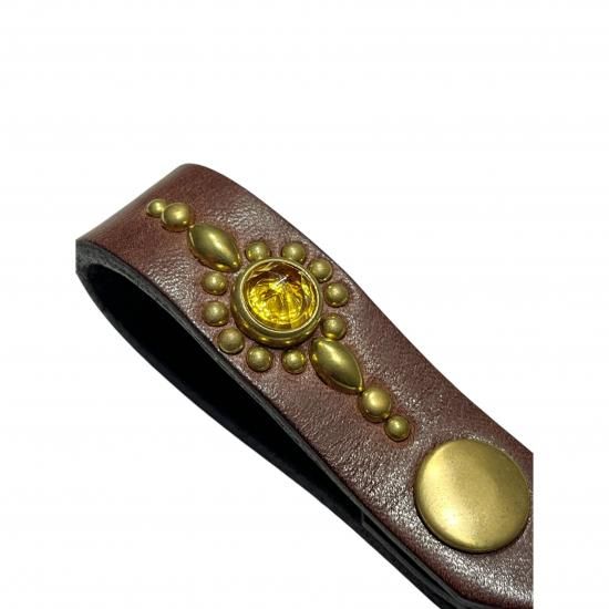 Jewel Studded Leather Key Ring "Helios Pattern" Brown【ZA-0706】