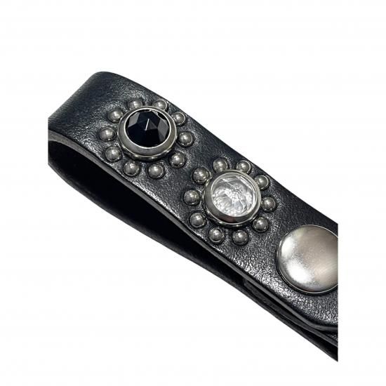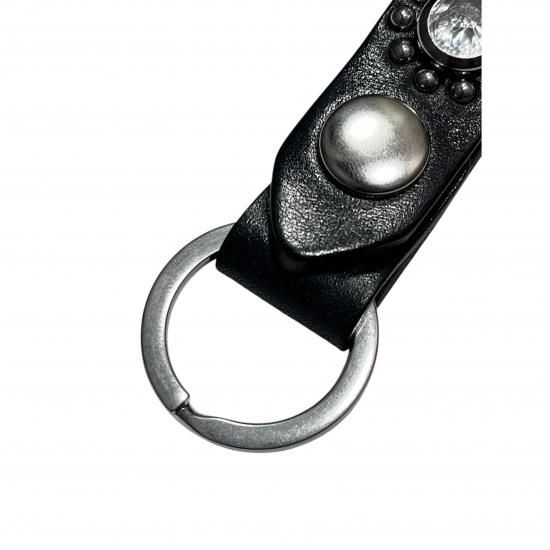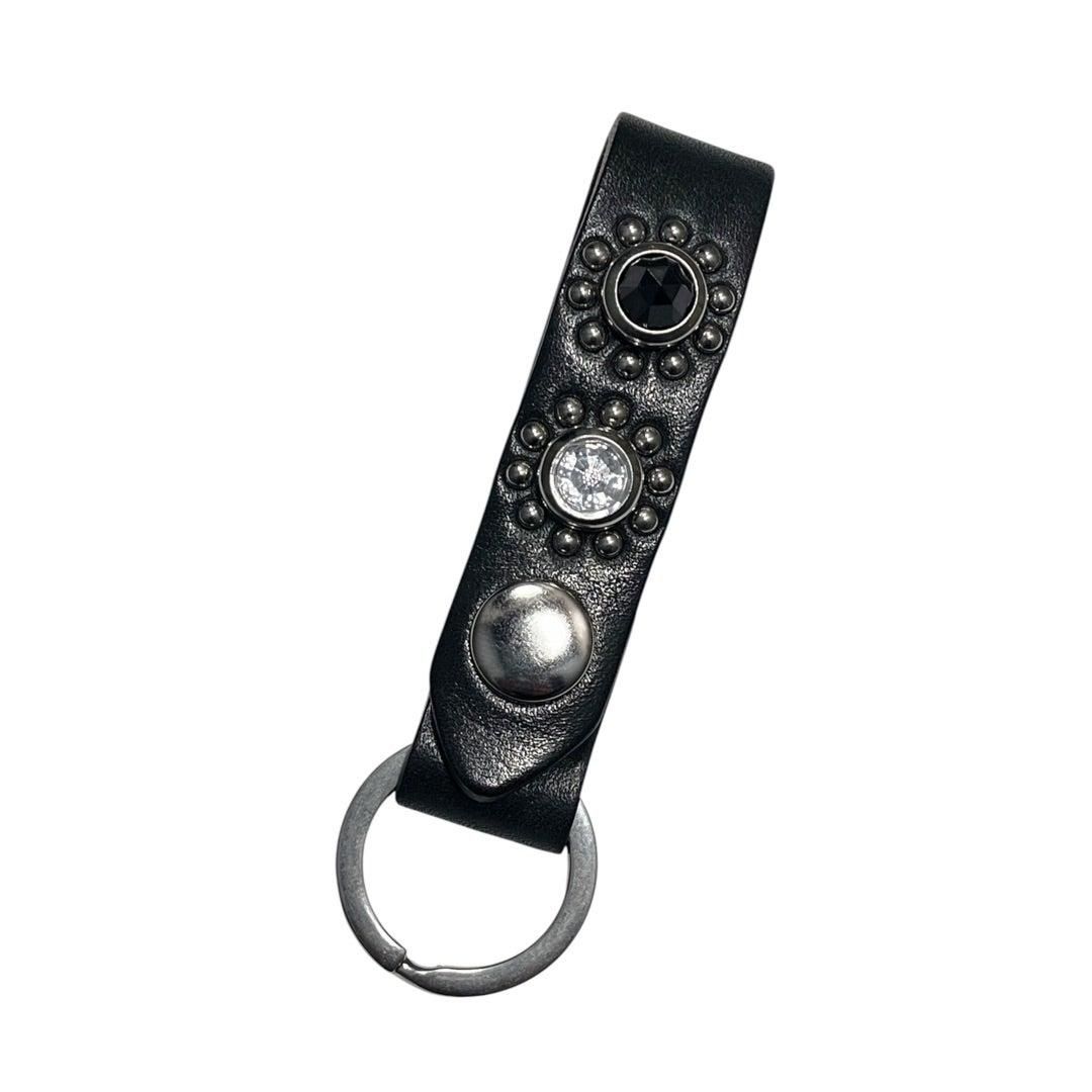 Jewel Studded Leather Key Ring "Sunflower Pattern" Black 【ZA-0707】