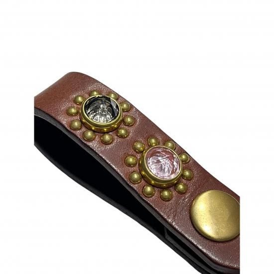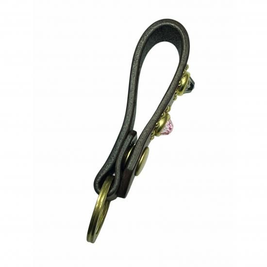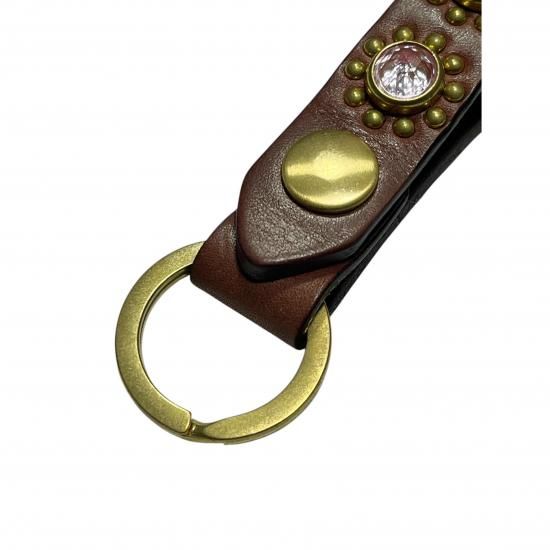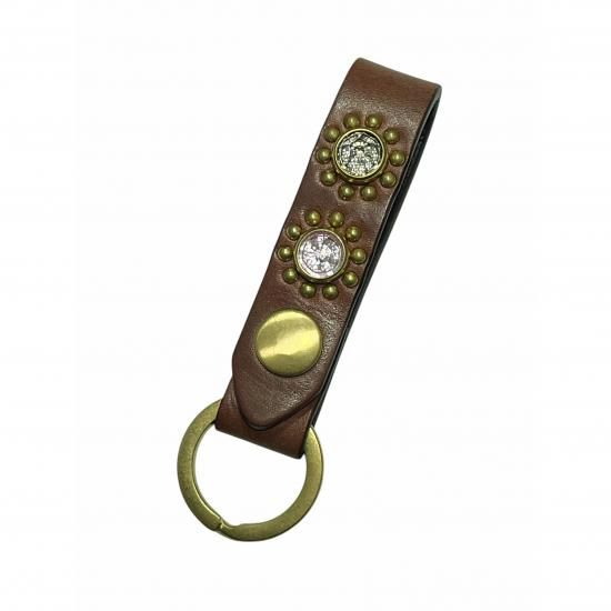 Jewel Studded Leather Key Ring "Sunflower Pattern" Brown【ZA-0707】