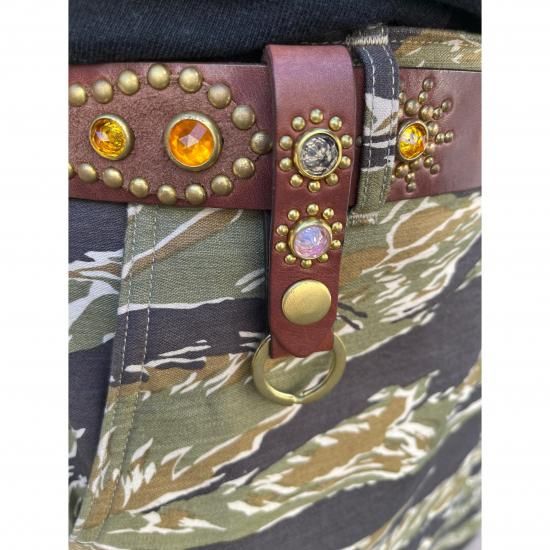 真鍮素材を下地とし、ニッケルメッキを施したThe Standard Rivet Companyのスタッズと同社のジュエルスタッズを使用したアイテム。
