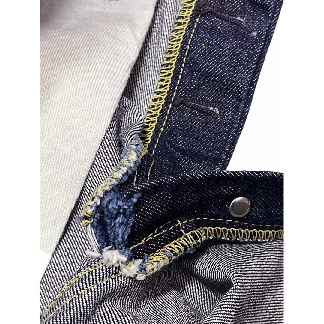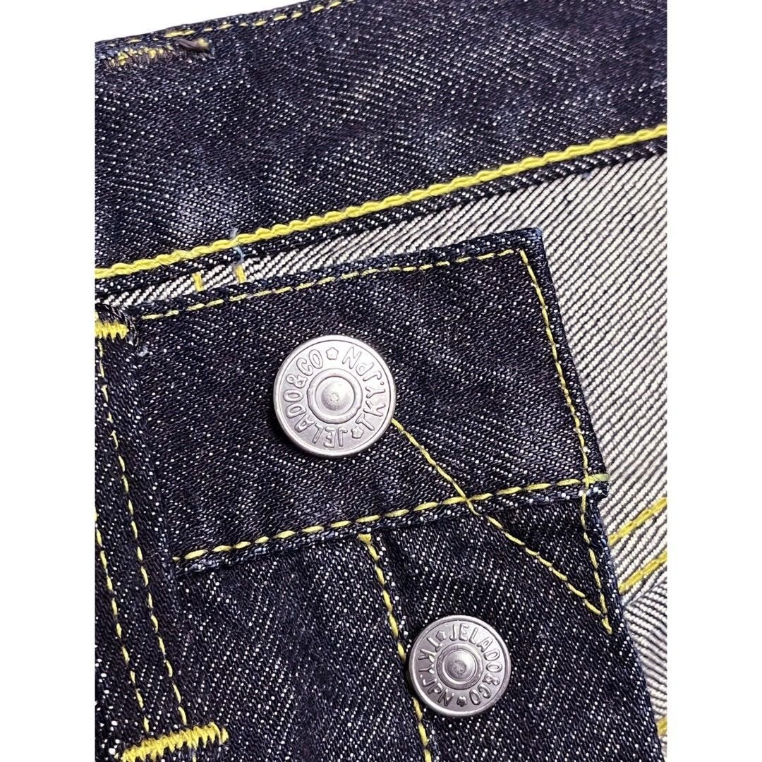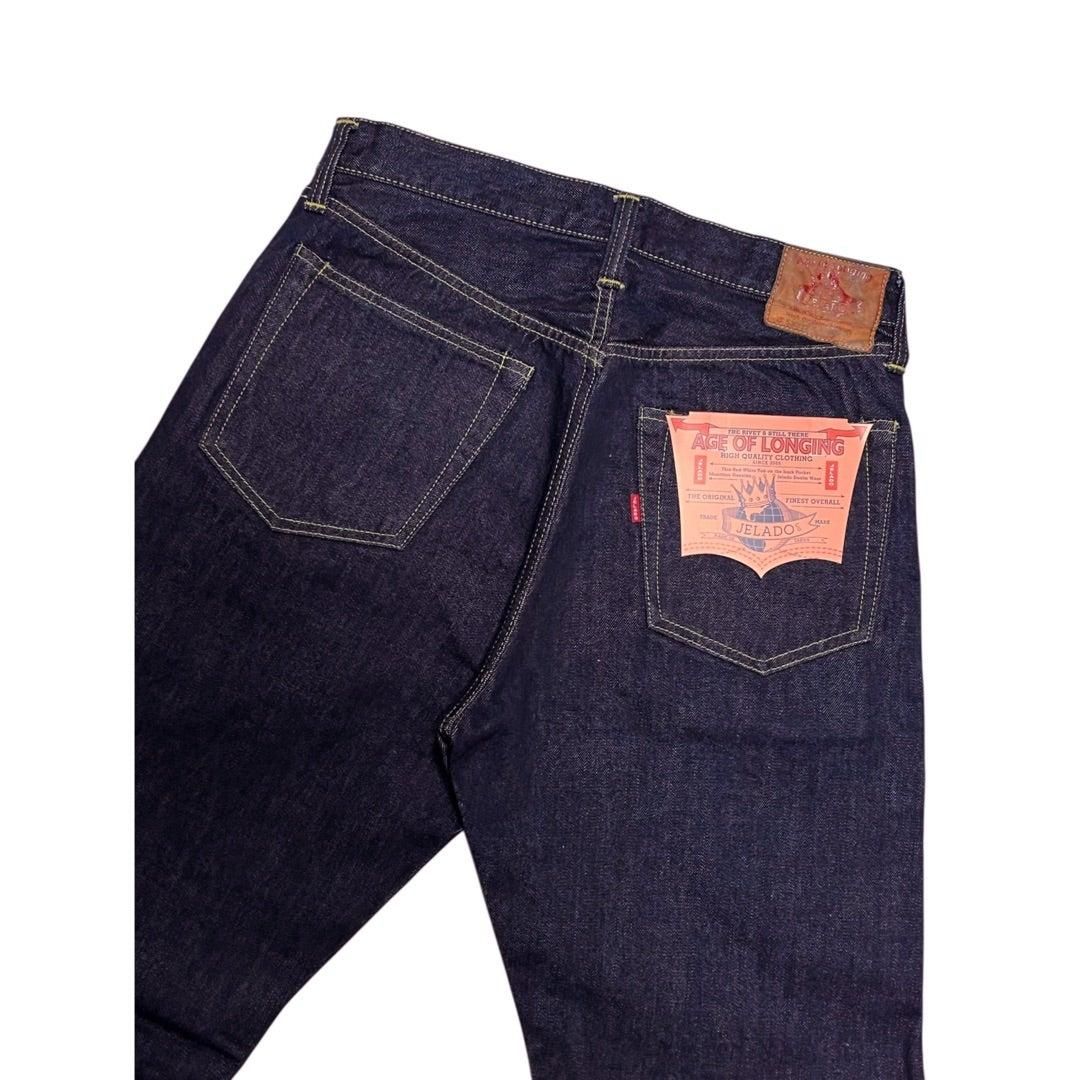 HOME Pants(パンツ) JELADO (ジェラード) S301XX 1942WPB L-181 Simplified Model(金タグ) Indigo 【JP94301S】 販売価格 46,200円(税込) カラー Indigo(インディゴ) サイズ W30× W31× W32 W33× W34× W36× 購入数 カートに入れる 税込¥11,000以上ご購入で送料無料 税込¥11,000未満の場合、送料は880円となります。 JELADO (ジェラード) S301XX 1942WPB L-181 Simplified Model(金タグ) Indigo 【JP94301S】 残り W30、W31、W32、W33、W34、W36 W30 ウエスト 74cm レングス 84cm 股上 28.5cm ワタリ 28cm 裾幅 20cm W31 ウエスト 77cm レングス 84cm 股上 29cm ワタリ 28cm 裾幅 20.5cm W32 ウエスト 80cm レングス 84cm 股上 29.5cm ワタリ 29cm 裾幅 21cm W33 ウエスト 82cm レングス 84cm 股上 30cm ワタリ 29cm 裾幅 21cm W34 ウエスト 84cm レングス 84cm 股上 30cm ワタリ 30cm 裾幅 21cm W36 ウエスト 88cm レングス 84cm 股上 30.5cm ワタリ 31cm 裾幅 21.5cm 約5年の歳月を経て、JELADO (ジェラード) から、最高峰のデニム生地を生み出し、製作された大戦モデル S301XX(金タグ)が登場! 今回は、当時のジーンズを忠実に再現し、白タグ、黒タグ、銀タグのデザインを踏襲。 更にUSEDの大戦モデルからもデータを抽出し、現存するヴィンテージの雰囲気をも再現! これまで見た事の無い、JELADOが目指した最上のデニム生地となります。 1942年8月にWPB(War Production Board=軍需生産本部)が物資統制のために出した法令「L-181」に基づき、全ての工場が「Simplified Model」として生産していたと仮定し、データとしては見えない部分も含めて、ヴィンテージの雰囲気を再現しました。 縦糸は米綿100%のディープサウスを使用。6番.7番.8番の3種類の番手を微調整し、ムラ感を表現。 横糸には6番手、長さ38mmの最高級超長綿「スピンゴールドシュプリーム」を使用。 別名「綿のロールスロイス」とも称されるこの特別な糸で、ロープ染色の際にはデッドストックの色味を参考にし、深みのあるピュアインディゴで染めました。 織り機には、TOYOTA G3を使用し、縦68本×横47本の規格で打ち込み、質感と再現度を最大化。 これにより、ヴィンテージならではの風合いや、不規則な色落ちを表現した、当時のデニム DEADSTOCKを彷彿させる究極の素材に完成させております。 デザインは弊社所有のS501XX初期型を基に、刻印入りの付属を再現。 バックポケットには飾りステッチを排除したシンプルなデザイン。 30年代の在庫リベットをそのまま流用した「JELADO Co」の"o"を小文字にした特注リベットを製作。 フロント裏の縫製部分の切りっぱなし仕様や、 太めのベルトループなど、大戦モデルならではのディティールを徹底的に再現しました。 金タグ 革パッチ ボタンは、JELADOオリジナルのロゴ入りの鉄製ボタン。 裏側にはV字ステッチも入っています。 縦長のコインポケット 2本針仕様 サイドステッチ バックポケット部分には、隠しリベットも付いています。 こちらはふくらみのあるドーム型!! 良い感じですね。 レーヨンの赤タブ。 シルエットは黒タグに近いスッキリとしたシルエットを採用し、穿くほどに表情が増す不規則な色落ちを楽しむことが出来ます。 ワンウォッシュでは味わえない、しなやかさと柔らかさが経年変化を一層引き立てます。 ワークパンツのような太さでなく、適度に余裕のあるシルエットがいかにもヴィンテージ感満載ですよ!! サイズ感も 当時の大戦モデルのS501XXのように少し股上の浅いシルエット。 ワークパンツのような太さでなく、適度に余裕のあるシルエットがいかにもヴィンテージ感満載ですよ!! 170cm 65kg W32着用。 太もも〜膝〜裾と太過ぎないシルエットが良いですね。 こちらがバック! 膝裏にも適度に余裕があるので、このまま履き続けると膝裏も結構アタリが付きそうですよ。 今回もシルエット、縫製、生地も当時のデニムを出来る限り究極までに再現したこちらのデニム、 JELADO (ジェラード) S301XX 1942WPB L-181 Simplified Model(金タグ)。 当時の深みのある色見となりますので、大戦モデル S501XXのエイジングを自分で楽しめ、尚且つ同じ履き心地で履いて頂ける拘り満載のデニム。 デニム好きな方、拘りのデニムをお求めの方、当時の生地、色落ちを自分なりに楽しみたい方には、オススメの1本となっておりますので、是非履き込んで、自分なりのエイジングをお楽しみください。